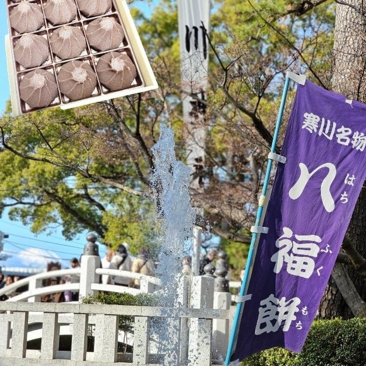 ②寒川名物の八福餅の形が、背景に見える富士山のようで、ちょっぴり縁起を感じました🎵