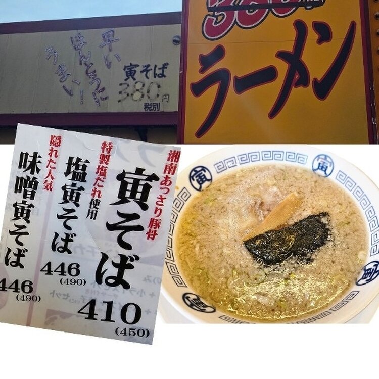 ④寒川神社のそばに、380円ラーメン屋さんを発見!ただ、取り消し線があったので、じゃあいくらなの?ということで、見てきました(笑
