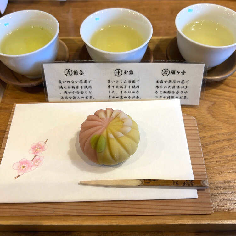 お茶屋さんならではの「緑茶の飲み比べ」。