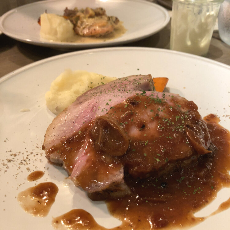 一度目の訪問時は人気のまん丸ハンバーグ、二度目はチキンのチーズソテーを♫