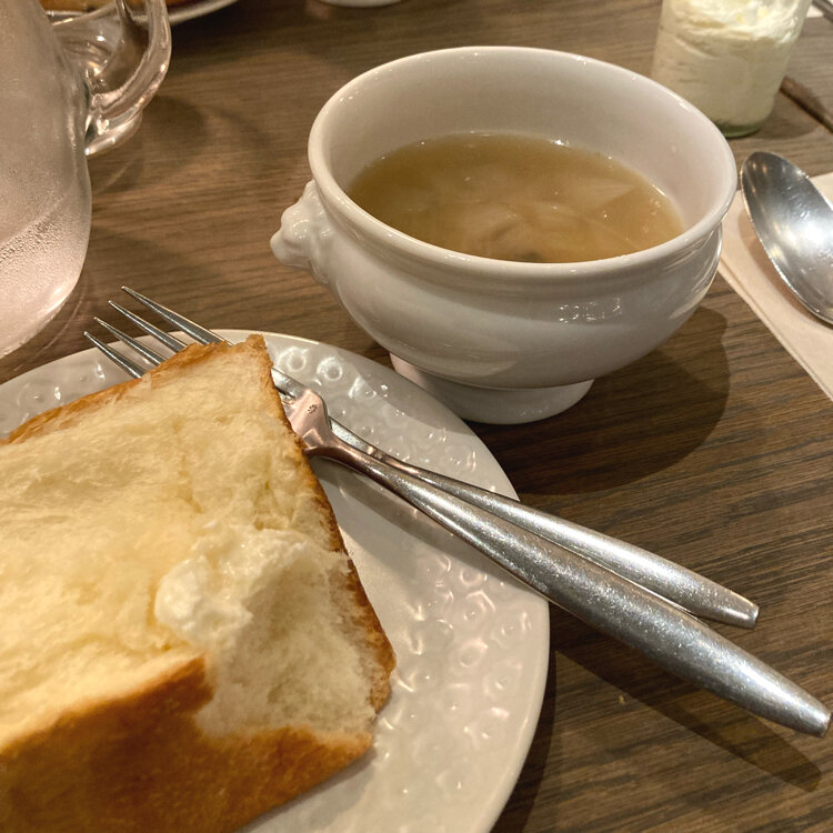 #冬の旅#熱々#焼き立てパン#スープ&リースサラダ#熱々まん丸ハンバーグ#チキンソテー#淡路新玉ねぎと大葉のオリジナルドレッシング#ホイップバター#どれも美味しい#私のことりっぷ旅#池袋#ブーランジュリー&ビストロ ラシーヌ
