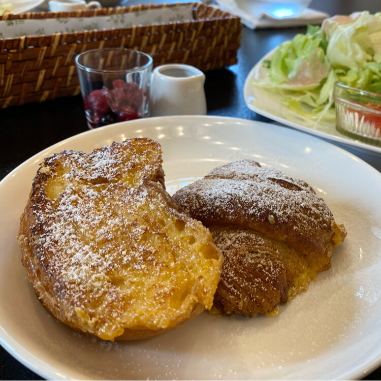 クロワッサンと食パンのフレンチトースト。