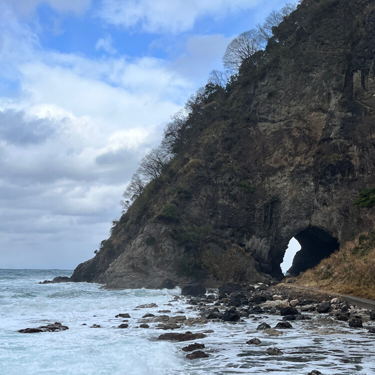 日本海は荒れていて、怖くなって私は洞門まで行けませんでした😅