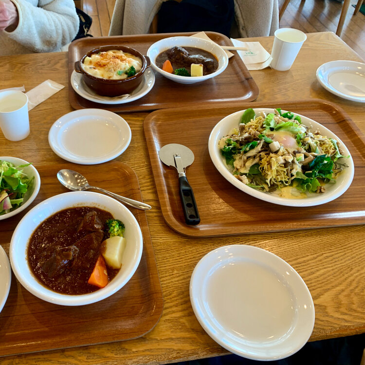 (長門牧場) (長門牧場レストハウス) 動物と触れ合ったり、乗馬体験できたりが楽しめるそうですが、冬は食事だけなのかな?🤗 カレーがお勧めの様ですが、前回焼きカレーを食べたので、今回私はビーフシチューにしました!👍 あと季節のサラダと、マルガリータのピザ! このピザ(薪窯で焼き上げる本格ナポリピッツァ)です! 乳製品も数多く取り揃えてました! 女神湖を左側に見て真っ直ぐ走れば左側に有ります。 旨かったなぁ…また行きたいなぁ!