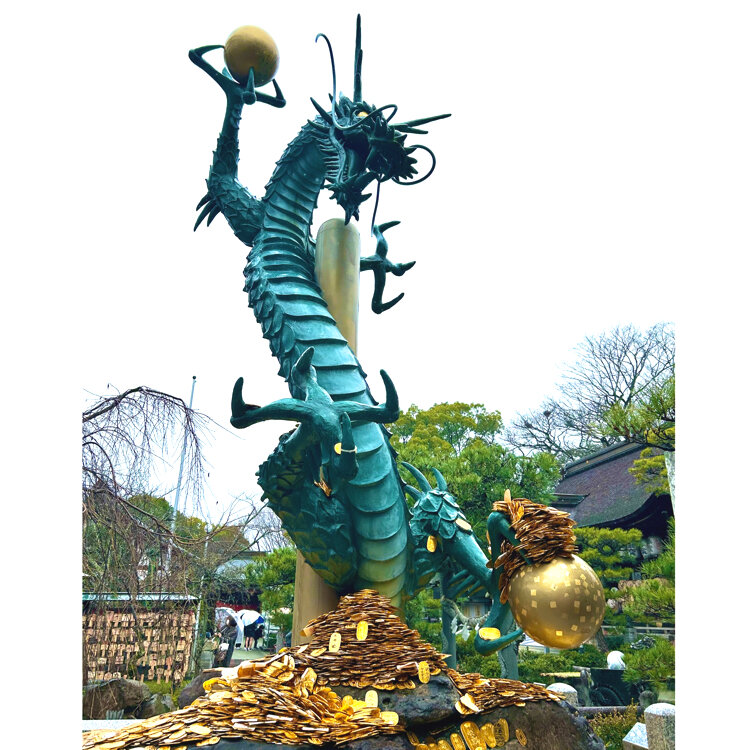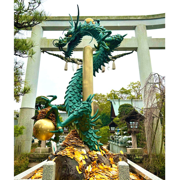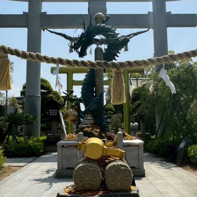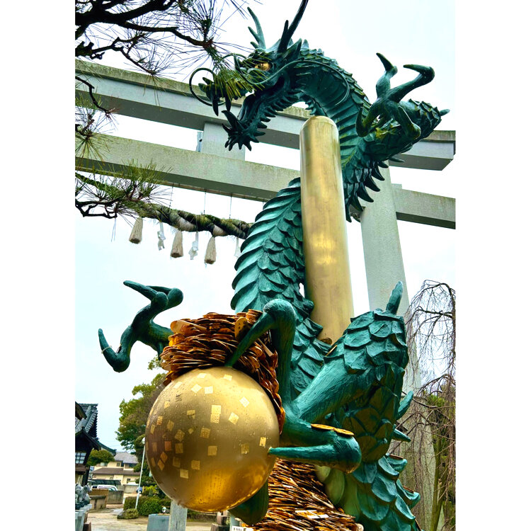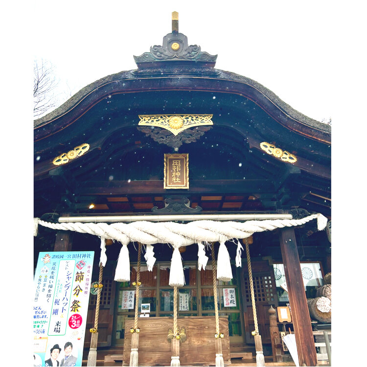 御神体は龍神様🐲田村神社の出水の淵には龍神が住むと言う伝説があるそうです。その龍神様をお祭りする神社には、迫力の金龍像があり、その袂には小判型な金のお供物がたんまりと積まれて人々の願いを一手に引き受けてくださっていました✨思ってた以上に迫力があり、お天気のいい日に見てみたいと思いました。手には金の玉を持ち迫力のある龍神様でした🐲寒い小雨の降る日でしたが、境内には梅の花が咲き始め、春も感じた日でした🌸