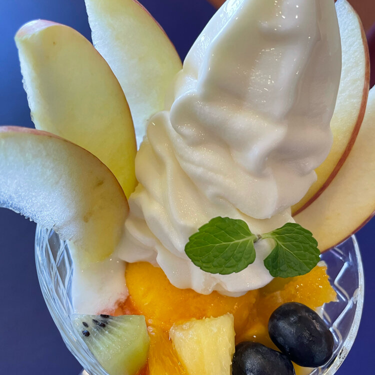 不二家レストランの彩りフルーツのヨーグルトパフェ(^^) いちばん上のソフトクリームは、ミルキー味♪♪ フルーツぎっしりで嬉しいです。 ソフトクリームの下には濃厚なマンゴーシャーベットとナタデココ入りのヨーグルト ヨーグルトの酸味とフルーツの甘みがとてもマッチして朝パフェにぴったりでした(^^) #不二家レストラン#フルーツパフェ#ペコちゃん可愛い#果物たくさんヨーグルト#ミルキー味のソフトクリーム#朝パフェ