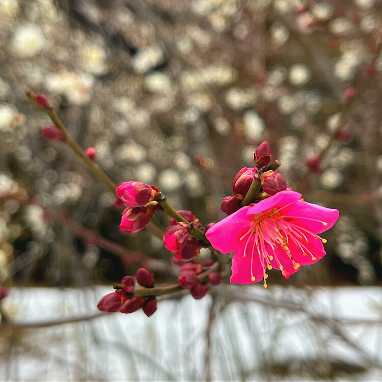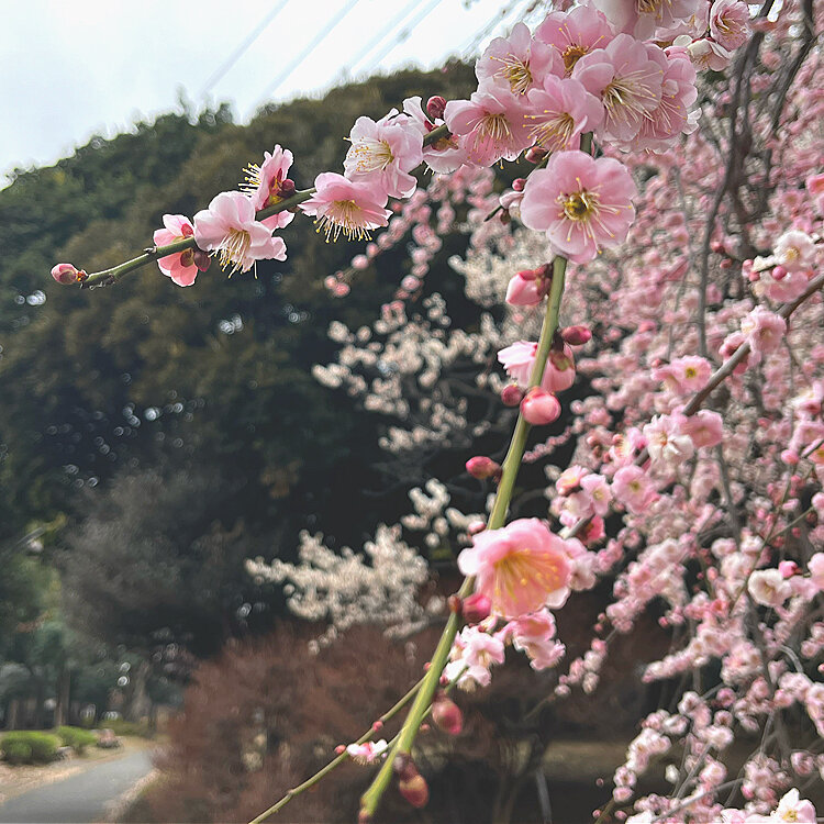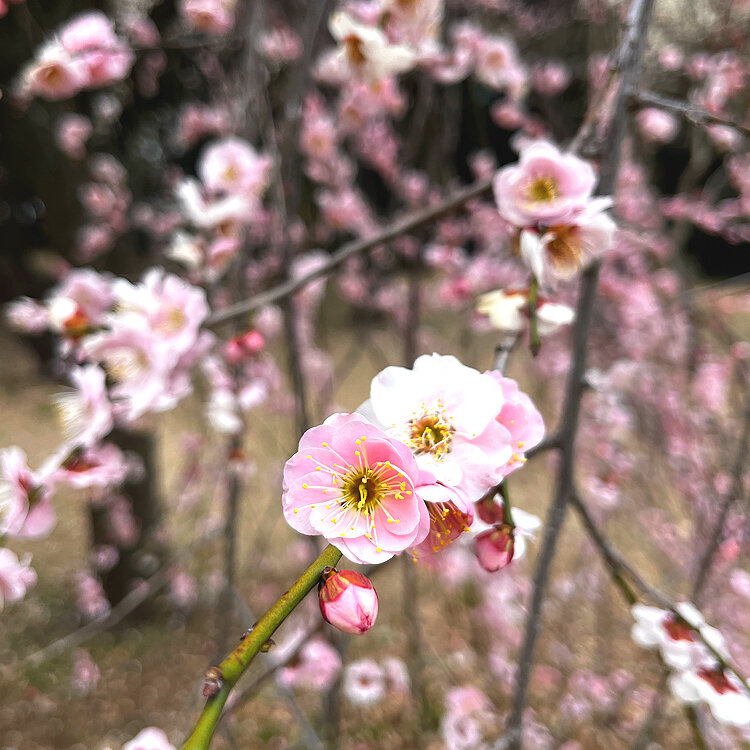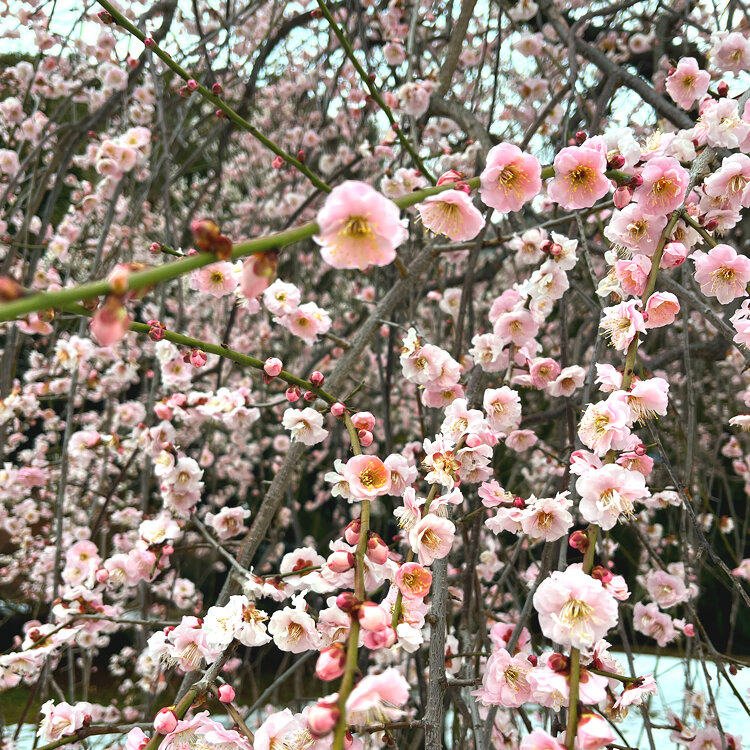 中でも、枝垂れ梅の華やなこと♡ 思わず足を留めて暫く眺めて 楽しみました👀♡