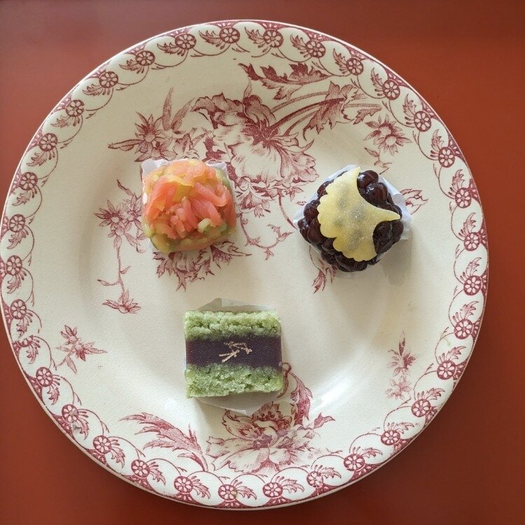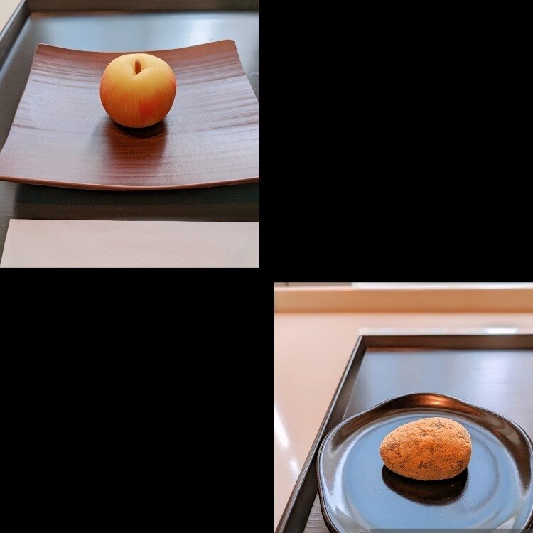 ①秋に東京駅の虎屋さんでいただいた、りんごの可愛い練り切りと、亥の子餅🐗♡