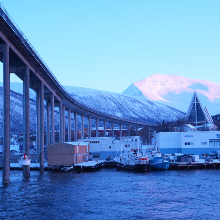 トロムソは北緯70°くらいに位置する北極圏の街。夏には白夜、冬は極夜となります。