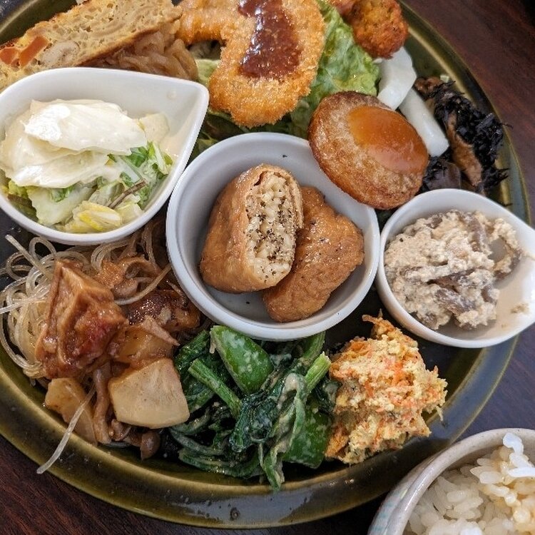藤沢市亀井野にある カメイノショクドウに行ってきました💕 昭和のレトロなお店 店内撮影禁止🈲 団地の中にあるのでジモティで混雑してました。 おそうざいプレート 野菜中心 美味しかった😄