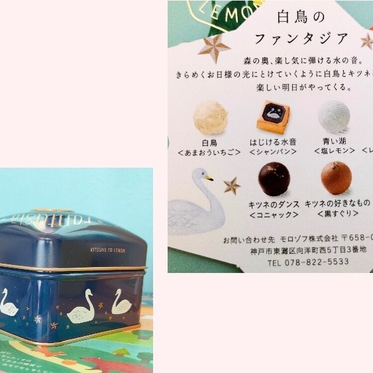 可愛い缶🦢に色んな味のチョコ。