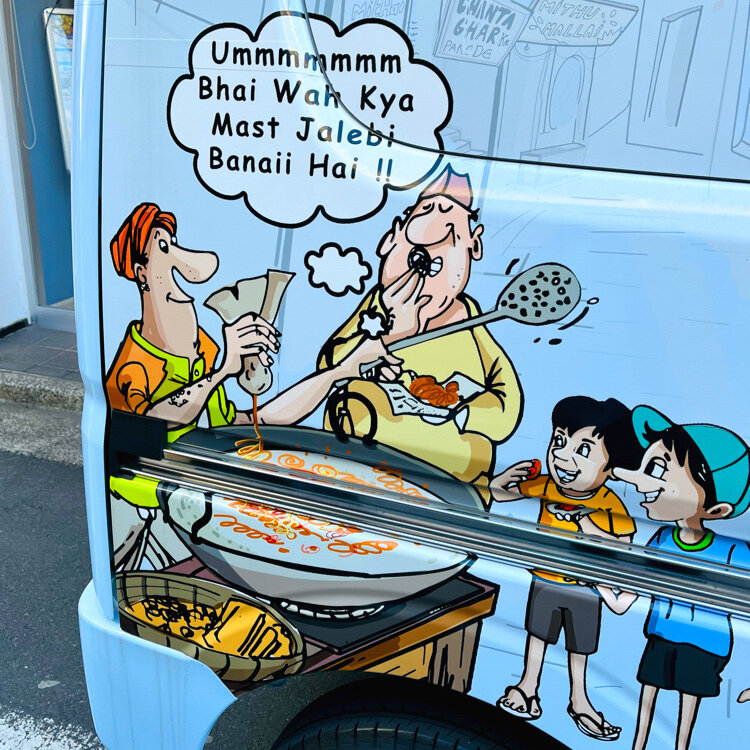 外に置いてあったお店の車にこのジャレビの作り方が⋆⸜💡⸝⋆くるくるーっと生地を垂らし揚げて、シロップにしみしみーにつけているらしいっすよ︎
