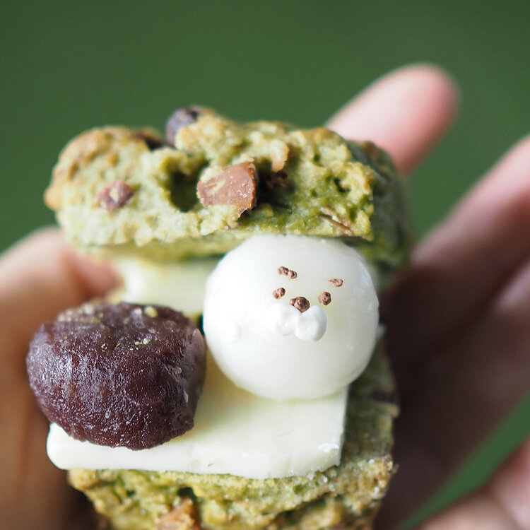 抹茶スコーンにはナッツとチョコがごろごろ。