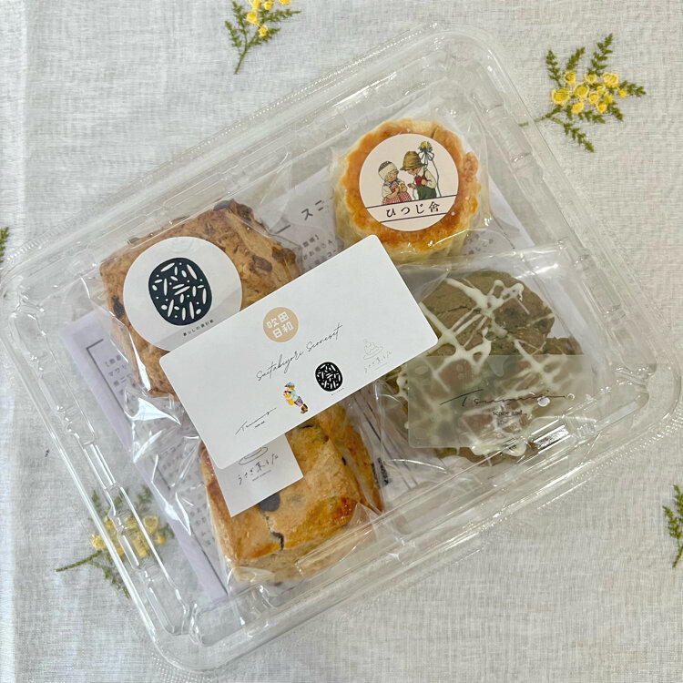 ひつじ舎さん、マワリテメクルさん、スコーン屋つむぎさん、うさぎ菓子店さんのセットです💕
