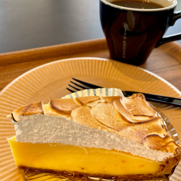 爽やかなレモンクリームがたっぷりなレモンパイをアメリカーノのホットと一緒に頂きました。