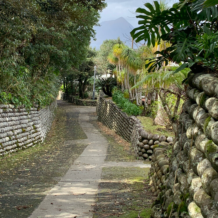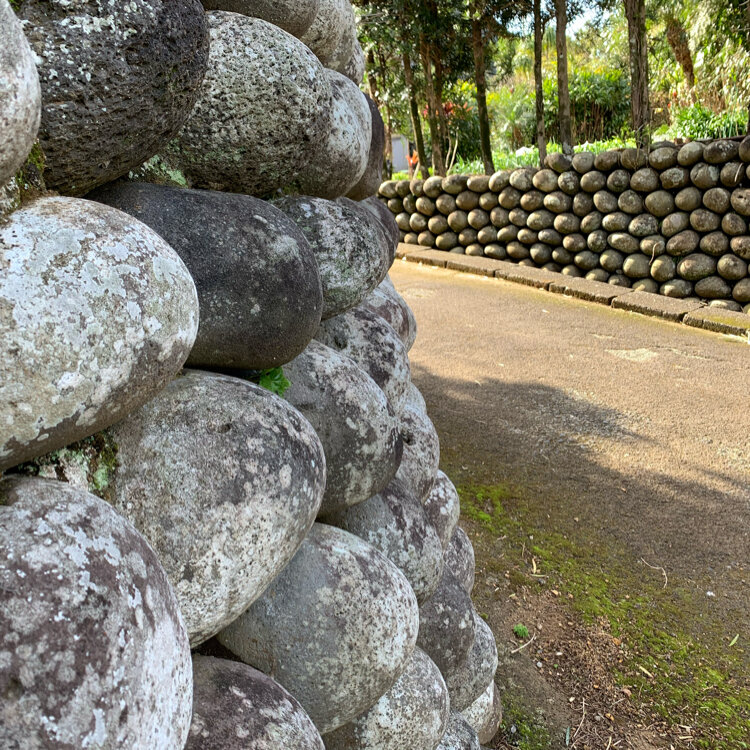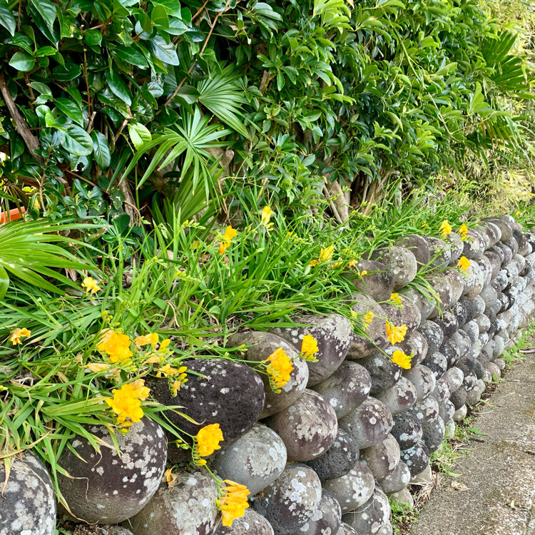 八丈島へ黄八丈とキョンに会いに行ってきました。 八丈富士登山と温泉、クジラも目的です。 丸石を六角形に積みながら 八丈の暴風雨にも崩れない石垣。 春の花、フリージアが咲き始めていました。 #春色さがし#八丈島