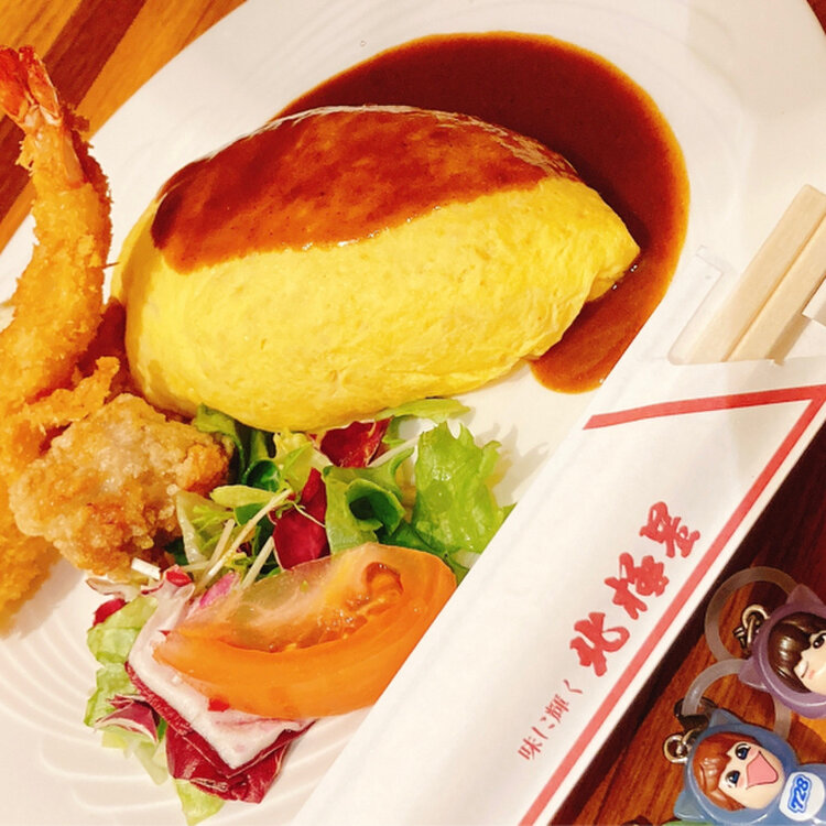 【北極星 ルクア大阪店】 関西でオムライスを食べるなら!な有名店のルクア内の店舗。 地下のバル街の一角にありとてもこじんまりしていますが店舗限定メニューがあったり、1-2人向けのさくっと立ち寄れる席が充実だったりします✨ 写真はルクア店限定のメニューでオムライスに好きなソースがかけられて、プレートには揚げたてのエビフライに唐揚げ、クリームコロッケもついてきます🍳 今回はスープを追加。サイドメニューではエビフライやクリームコロッケを追加可能。 ふわっとした卵に中はケチャップライスではなくバターライスで味は濃すぎず。 #大阪グルメ #大阪駅 #ルクア #大阪 #オムライス #人気店 #エビフライ #駅ビルグルメ #ふわふわオムライス
