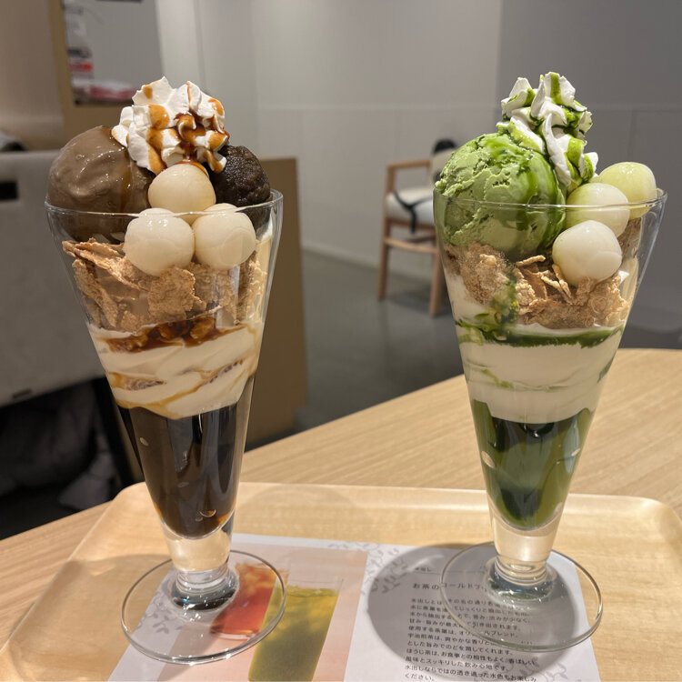 先輩はほうじ茶白玉パフェにしてました😄