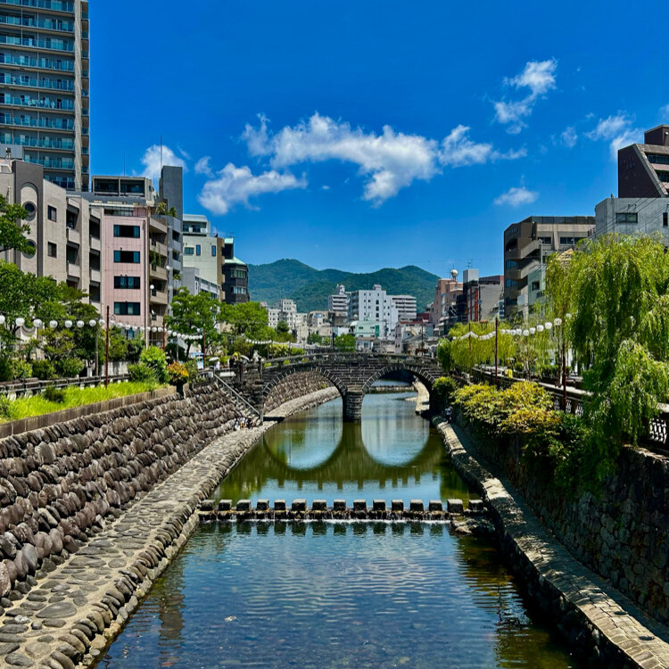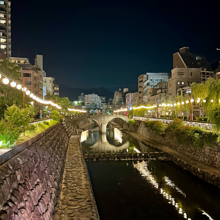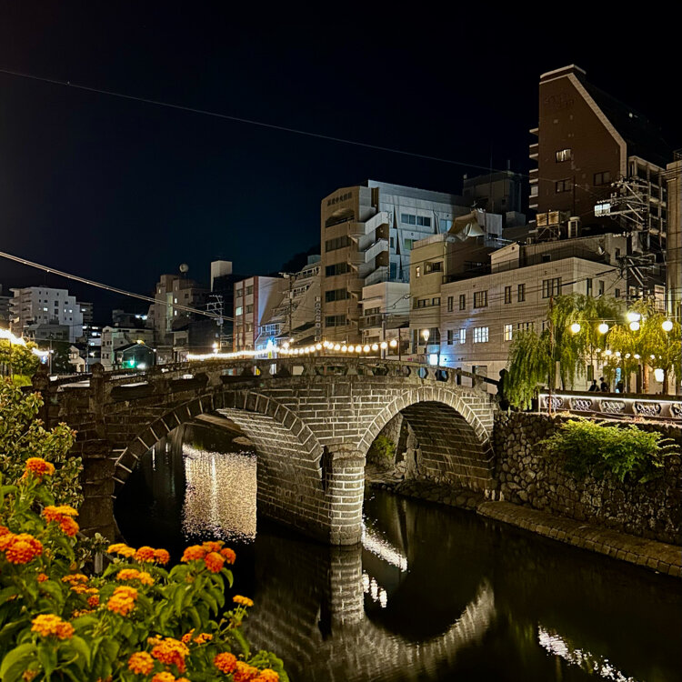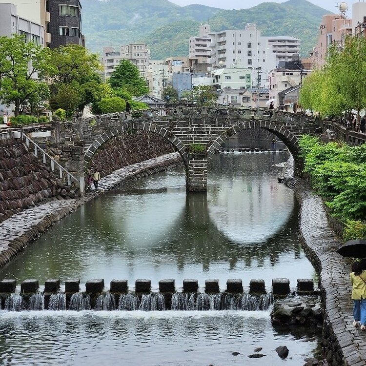 日本三大名橋で知られている長崎眼鏡橋✨ 27年ぶりに再開出来ました😆✨ 高校の修学旅行以来の長崎県に滞在しました! 眼鏡橋は夜になるとライトアップされているので、昼と違った雰囲気を出してくれます! ハート岩を探すことも小さな楽しみですね😆✨ #ゆるり夏時間 #眼鏡橋 #長崎県