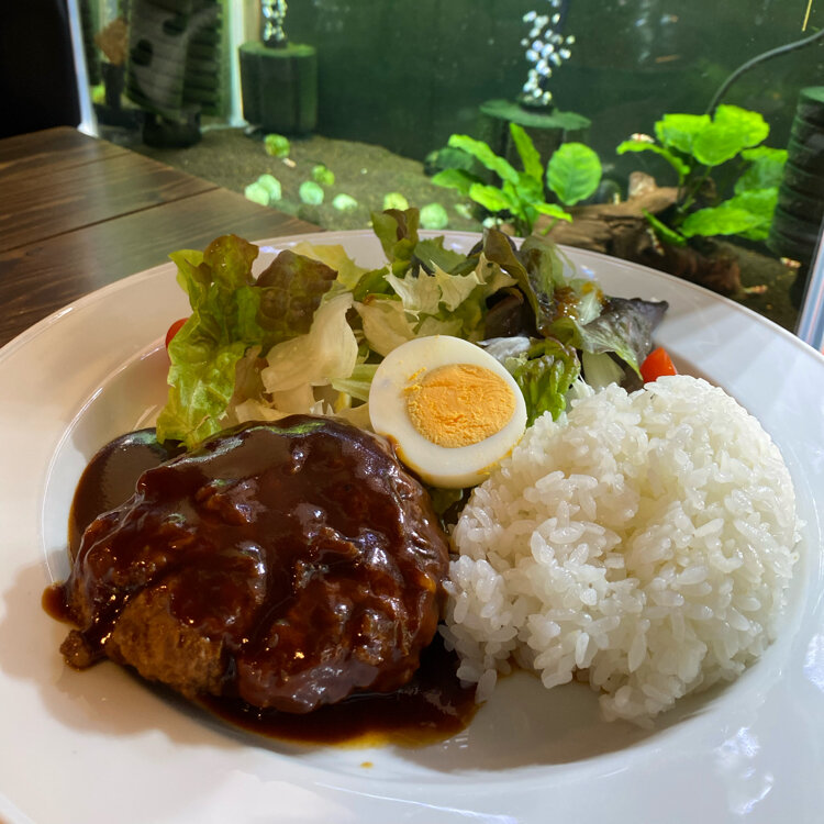 ちょうど最後の一口のスープを飲み終わるタイミングでワンプレートのハンバーグが目の前に✨