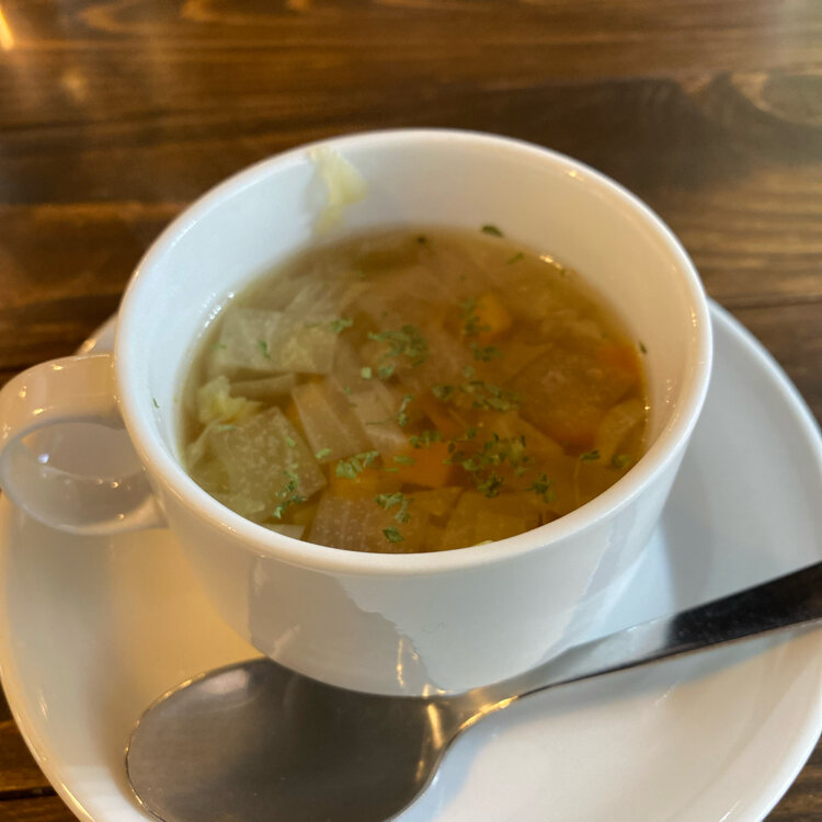 #ランチ#ハンバーグ#野菜スープ#ろまん亭#真庭市#真庭市勝山