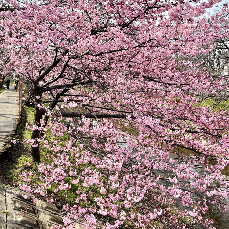 奈良市内〜大和郡山市まで続く佐保川 【河津桜】が、ほんの数本だけ 植樹されている所があります。 まだまだ小さな木ですが 早咲きの桜は綺麗に咲いてました🌸🌸🌸🌸🌸 #奈良市 #わたしの街