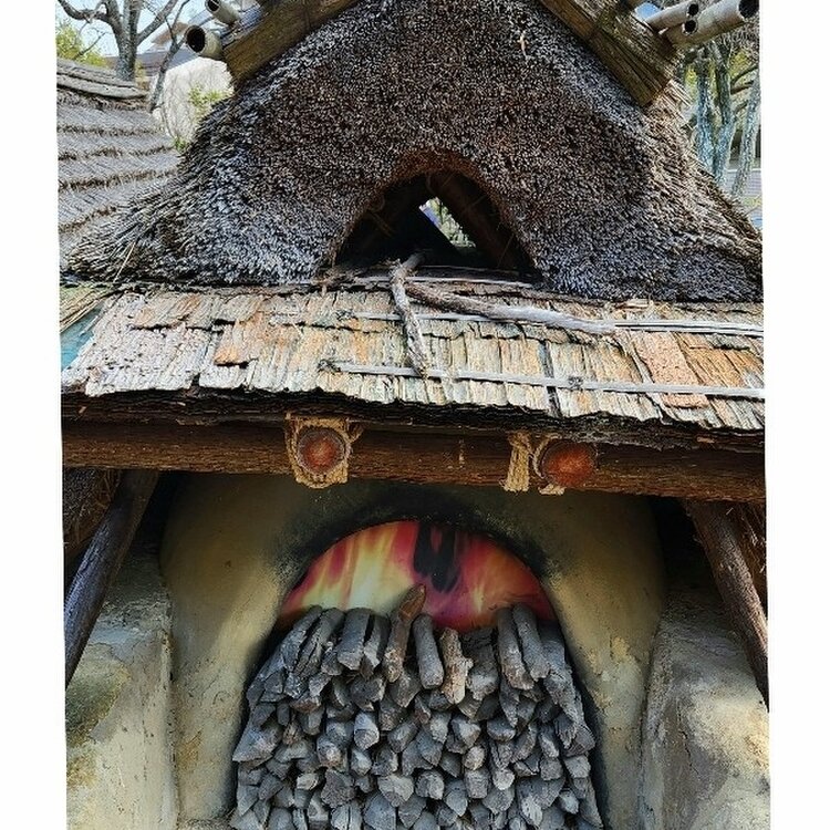 ③ハニワを窯に入れて薪をくべて火をつける🔥1日かけて焼く。
