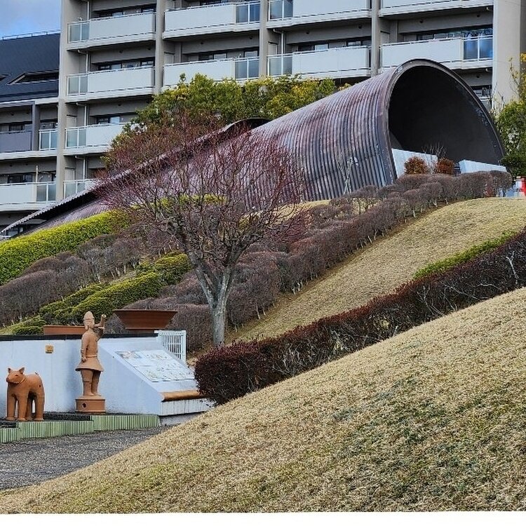 現代のマンションを背景に現代と古代が交差した面白い風景ね🫠