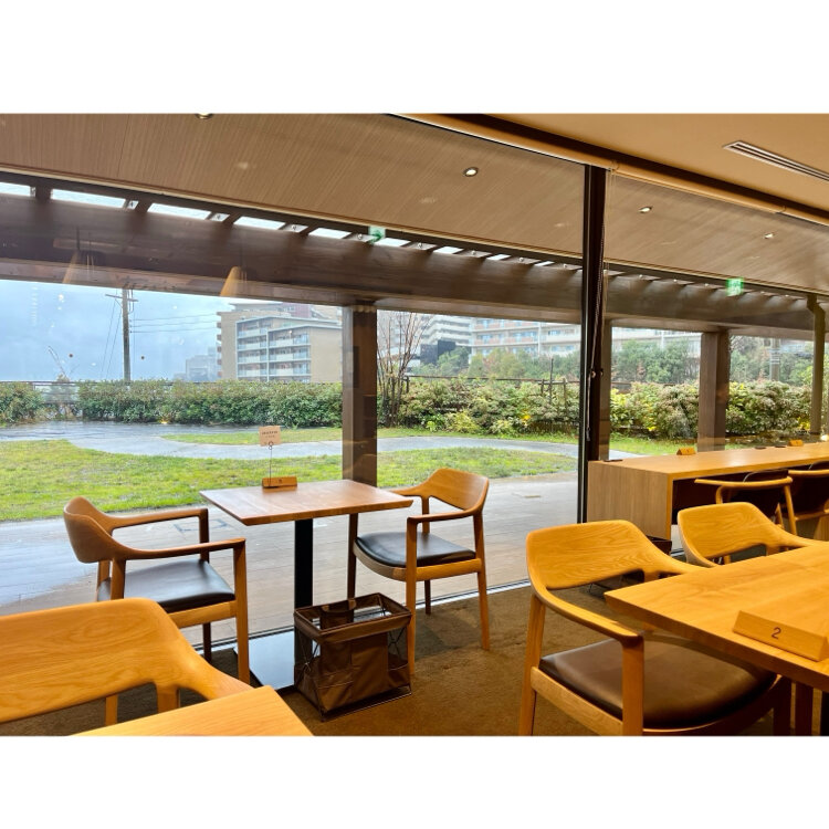 お庭を眺めながら超焼きたてチーズケーキを頂けます😍