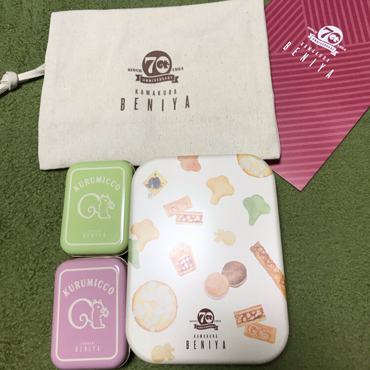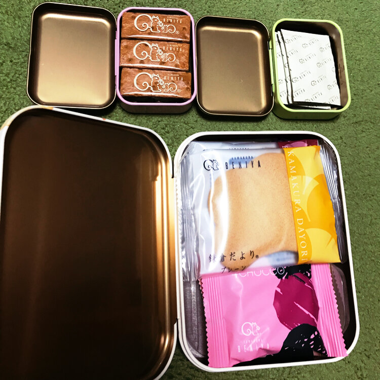 当たらなかったらどうするつもりだったんだろう?大きい缶の方にはBENIYAさんの銘菓クッキーの詰め合わせ。あじさいが1枚入ってました。