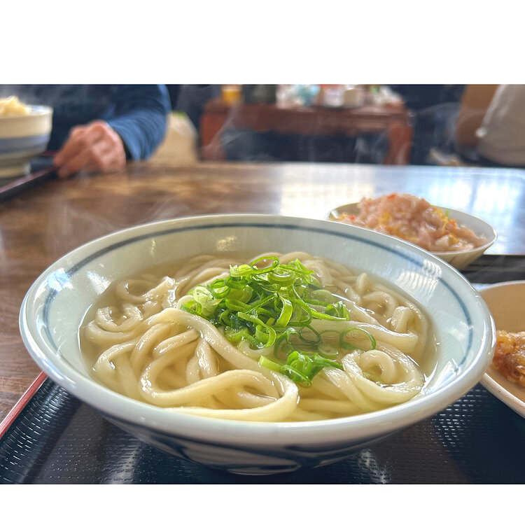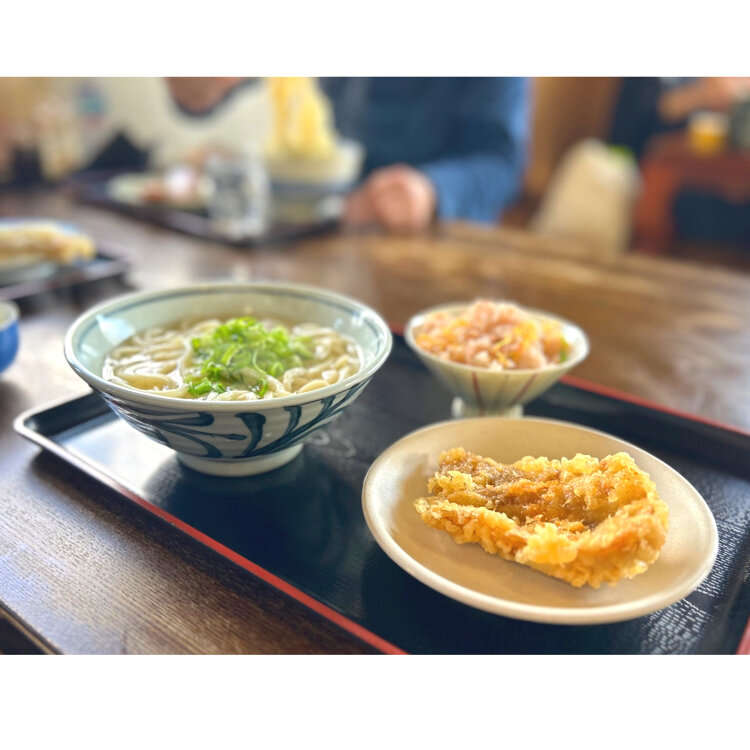 かけうどんとかしわ天。そして、この日の限定タコ飯🍚かしわ天は香川県らしく(うまく表現できない💦)鶏鶏して、これだけでご飯の一品になる、絶品でした。たこ飯も蛸がゴロゴロ入ってて大満足🎵かけうどん出汁、ほんの少しだけど塩気があるような、だから、大根おろしが置いてあったんだ💡👀とみんなで納得してみたり。さぬきうどんと言ってもほんとお店によって違って、さぬきうどんツアーがあるはずじゃと今更ながら思いました☺️でも、全店で言えることは、どこも元気いっぱいで行くだけで元気と満足をお土産にもらって帰れるんですね🎵だから、また行きたくなるだぁ🎵