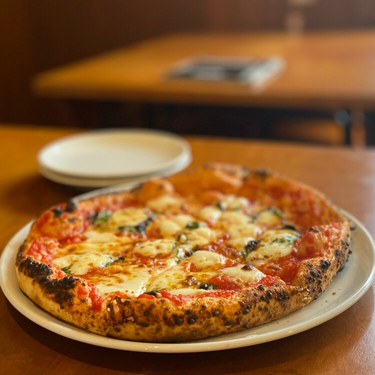 富士山溶岩釜で焼いたピッツァ🍕は香ばしく