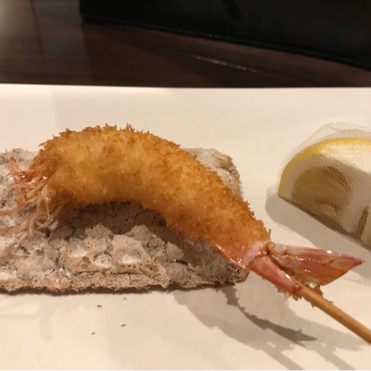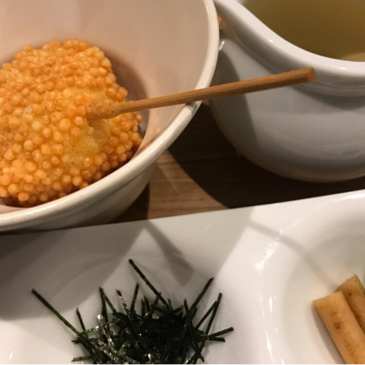名古屋市東区 創作串揚 つだ お世話になった方が遠くへ転勤になるので、送別会を 串揚げ12本、お茶漬け、デザート、食後の飲み物のおまかせコース カウンターでゆっくりおしゃべりしました 子持ち昆布のトロトロの串揚げが、私的には一番美味しかった ビールの後のレモンサワーはつぶつぶ、苦味しっかり、さっぱりで、串揚げにもよく合いました お茶漬けはあられ茶漬けをセレクトし、お腹いっぱいなのに、サラサラ食べてしまいました 食後の飲み物はエスプレッソでしめました お客さんが次々入れ替わる人気店です