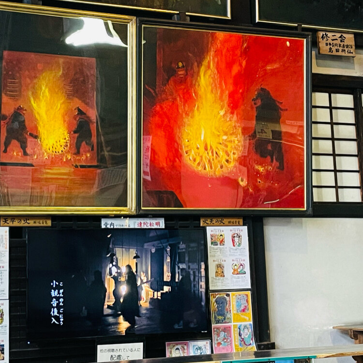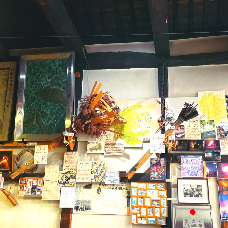 無料休憩所になっていて、奉納されたたくさんの絵画やお松明の見本、修二会の資料も展示されています