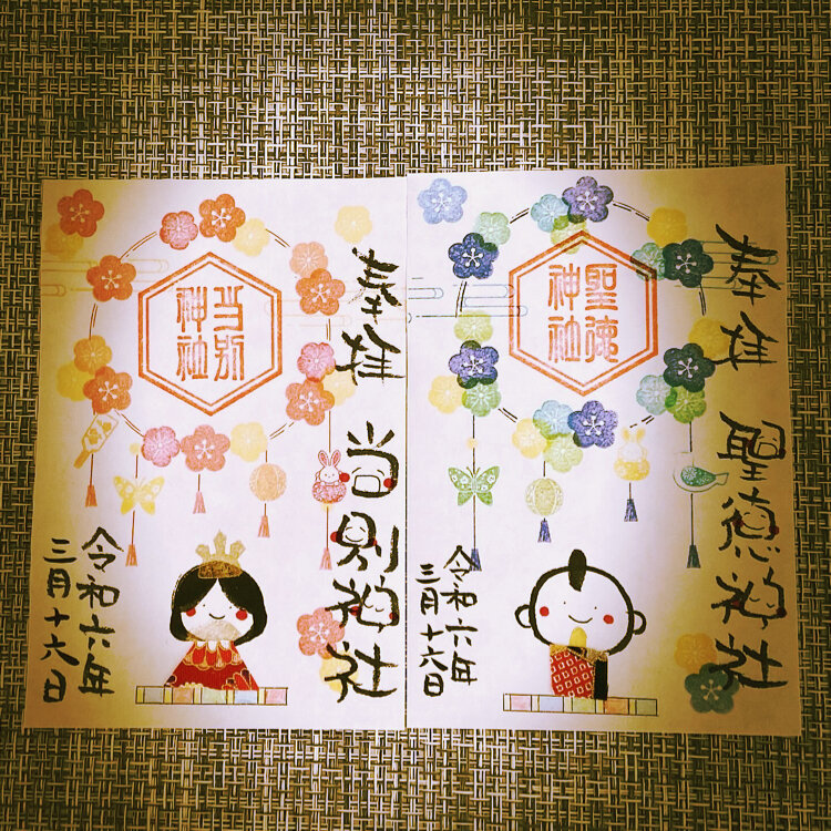 当別神社⛩️聖徳神社⛩️ 3月限定の御朱印🌸 セットで欲しくなりますね😊 まだまだ残雪の中のお参り🙏 春が待ち遠しいです。