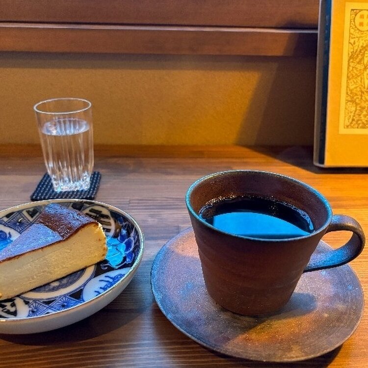 私は ツキマチコーヒー☕️とバスク風チーズケーキ