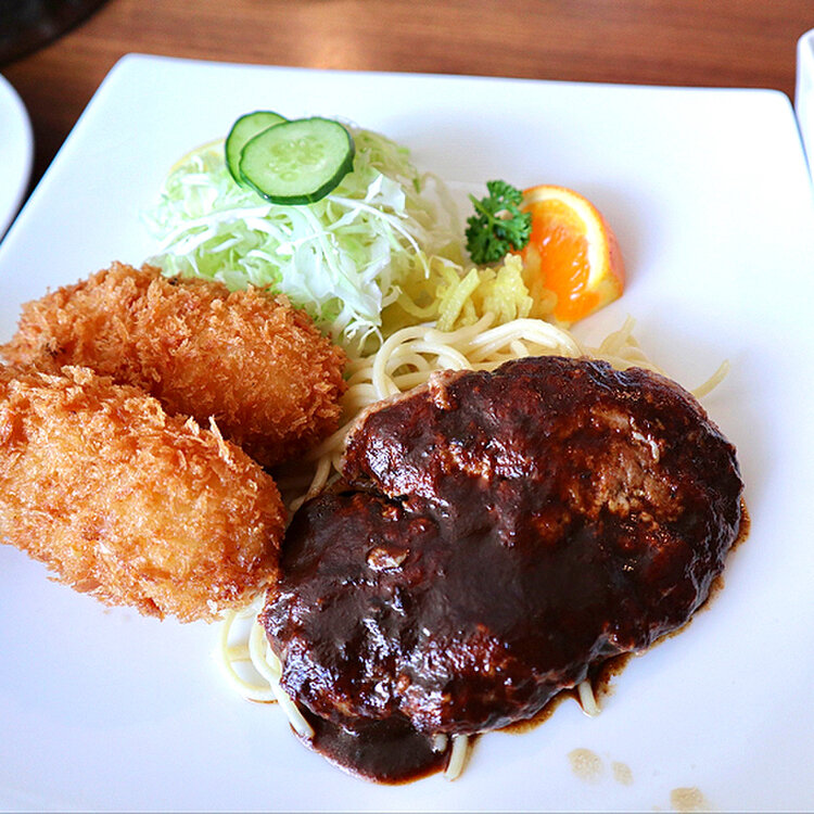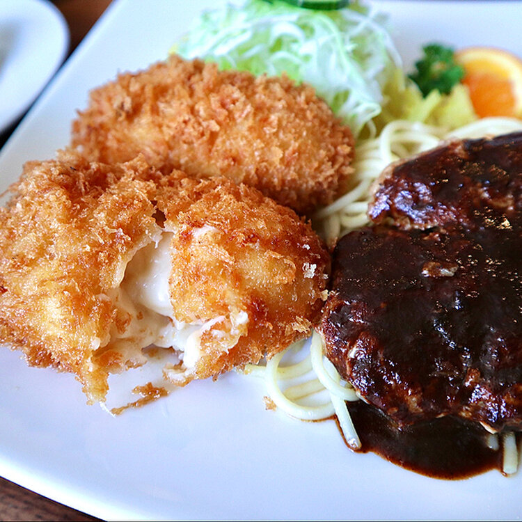 私はにゅうとんさんの人気メニューだというカニクリームコロッケと大好きなハンバーグを選びました😆