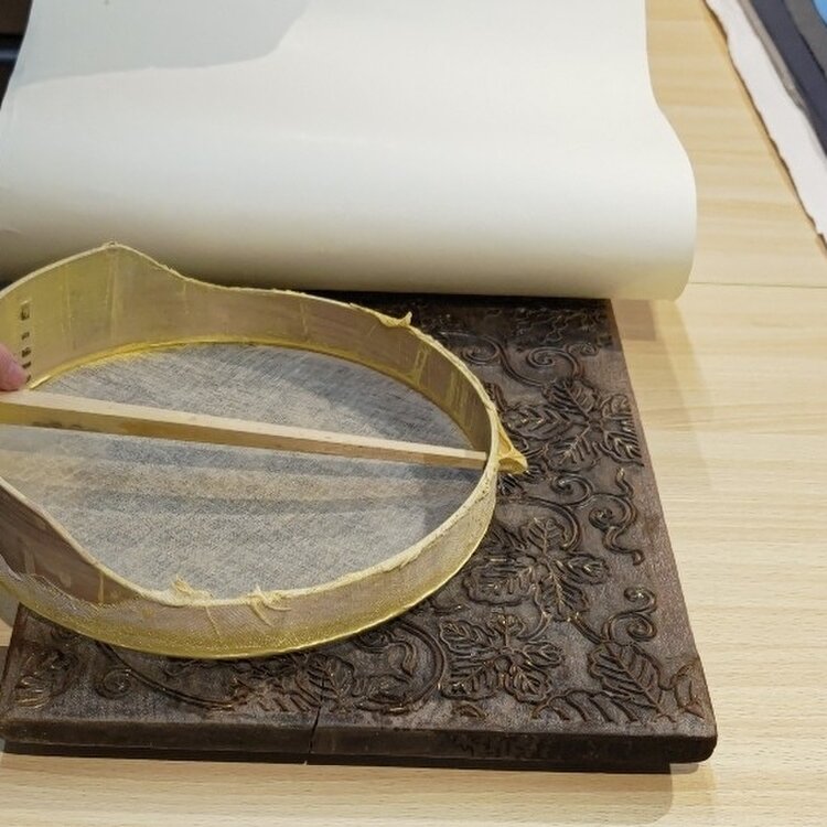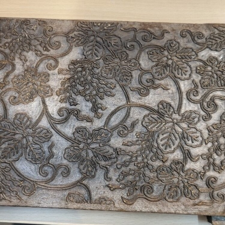 彫る人も、摺り上げた人も、熟練の匠な技があればこそ。ふすま紙や壁紙てして使用されています。