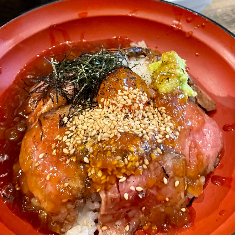 ランチは丼もののセットが有ったので、近江牛のローストビーフ丼のセットにしました。