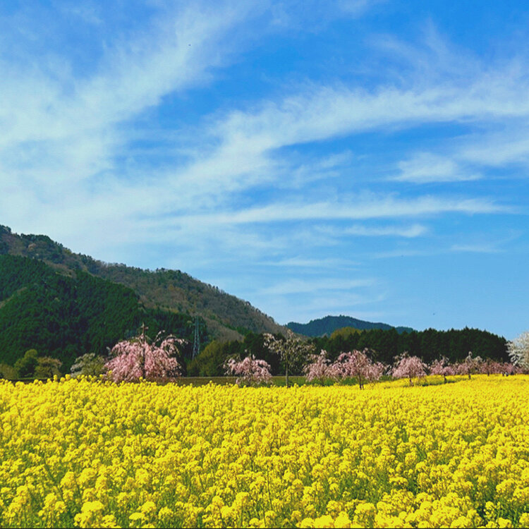 花の絨毯🌼 #夜久野高原 #花畑 #菜の花 #桜 #青空風景 #ドライブ #癒し