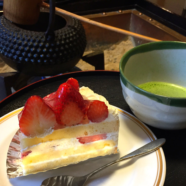 好みの菓子を注文すると店内で点てた抹茶のサービスがあり、隠れ家的な個室でノンビリと座って食べることも可能༄