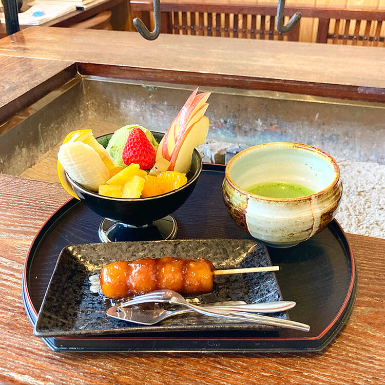 みつ豆はフルーツと抹茶アイスが乗り、口の中でほどけるような優しい甘さ🍹
