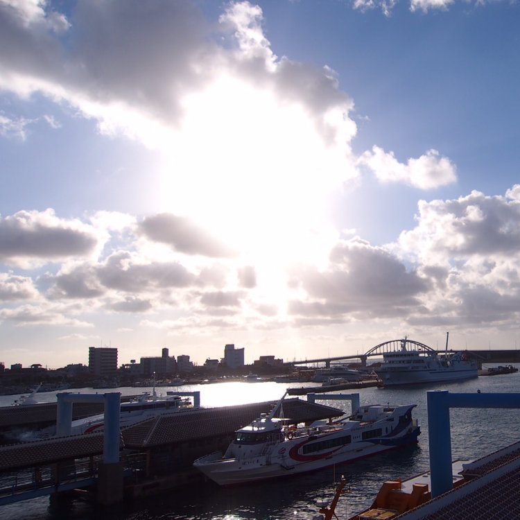 先週の社員旅行にて。 この時期の日の出写真は、離島ターミナルの屋上の展望スペースがいいと思います。人工ビーチ南ぬ浜に渡るサウスゲートブリッジとの位置関係も良好です。#石垣島