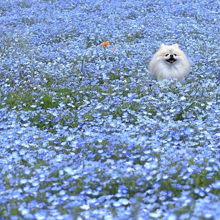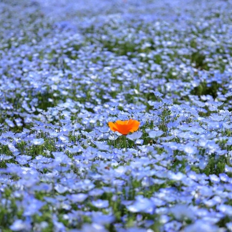 2枚目:ネモフィラの中に、違うお花がぽつんと🧡