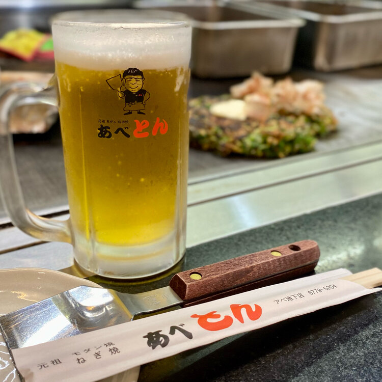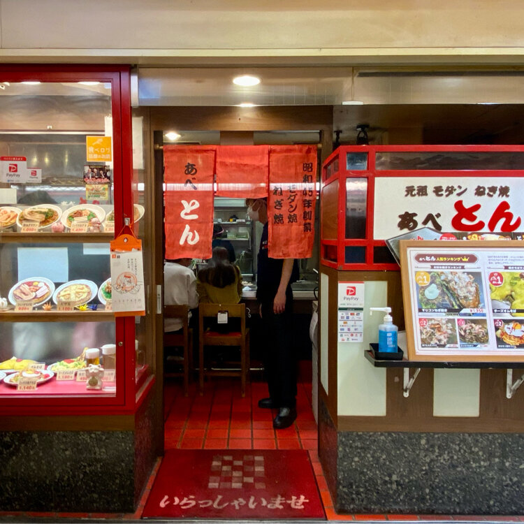 JR天王寺駅直結の地下街「あべちか」の老舗『あべとん』で、すじコンねぎ焼き。