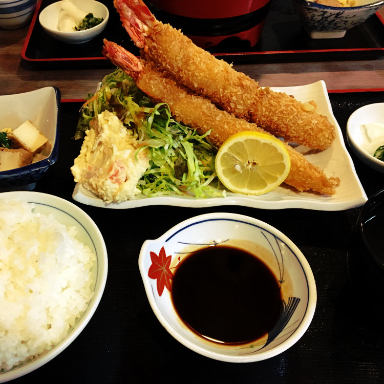 おっきなエビが3本もっ‼︎ しかもサラダもたっぷり‼︎食べ応えのある定食でした! 他にも唐揚げ定食、魚フライ定食などがありますが、どれもボリュームたっぷりでした。定食だと1000円前後で食べられます♬ #なまずや #岐南 #エビフライ定食