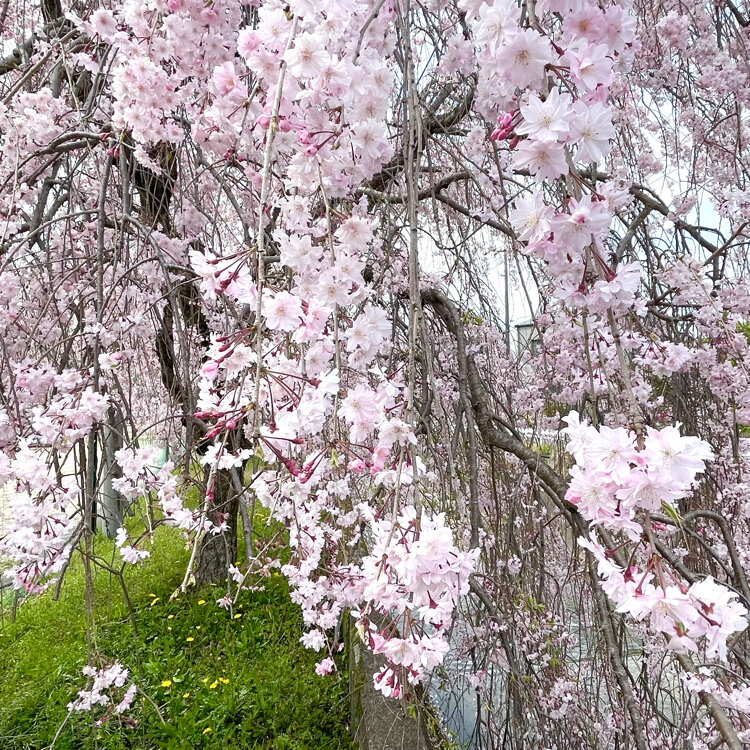 ⑤巡回バス拠点の広場の枝垂れ桜が満開でした。