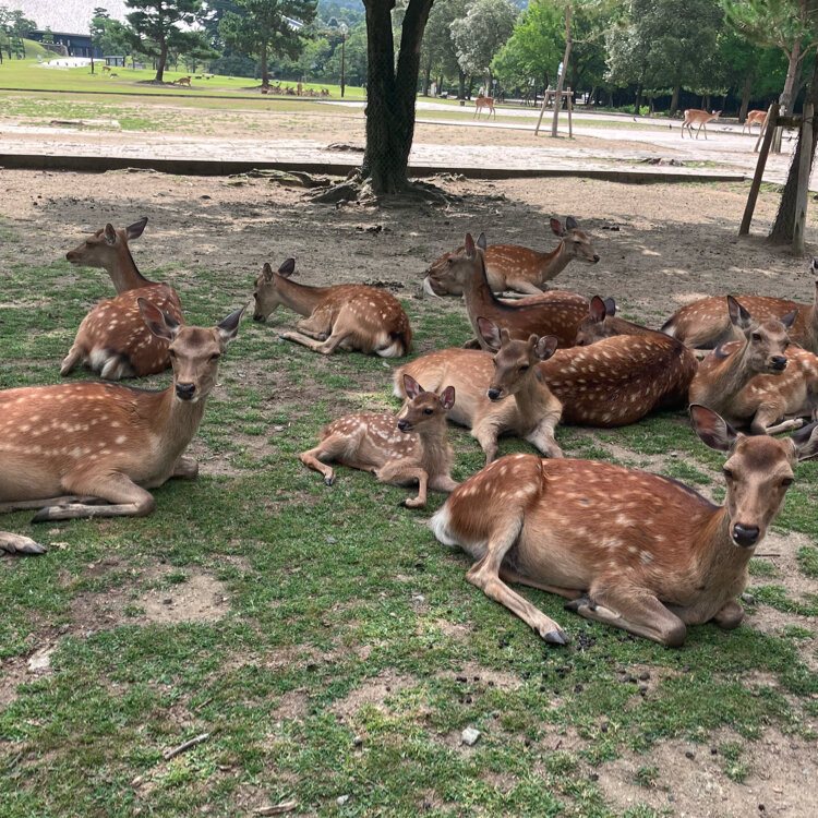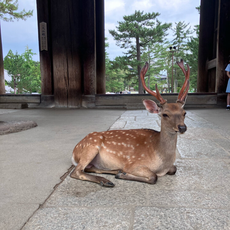 いざいざ奈良🦌 奈良ホテルで朝食後🍚 ホテルの電動自転車を借り🚲いよいよ(笑) いざいざ奈良の旅、2日目スタートです٩( 'ω' )و 鹿さんいっぱいの奈良公園🦌🦌🦌 暑いので☀️鹿さんもじっーと芝生で休憩中🤭 子鹿ちゃんもお母さんたちに守られているようで可愛いです☺️ ツノがとっても立派な鹿さんも✨✨ そんな鹿さん達を見ながら東大寺まで歩きます🚶‍♀️ 南大門まで来ると門の真ん中には堂々と 一頭の鹿さんが…🦌 日陰で涼んでいるのかなぁ🤭 そして久々に訪れた大仏様は私の記憶の中の 大仏様より大きく立派でした✨✨ 奈良に来た実感が半端ないです(๑>◡<๑) #ゆるり夏時間 #アートな景色 #いざいざ奈良 #ことりっぷ奈良 #奈良公園 #東大寺 #奈良の大仏 #奈良公園の鹿