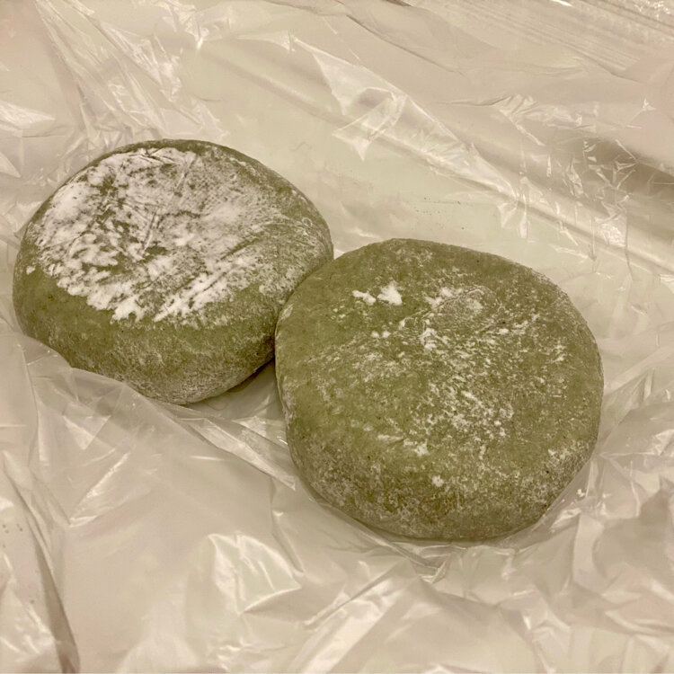 ヨモギ餅に特製餡を包んだ「焼きもち」もよく買ってきます。焼かなくても大福みたいで、焼くと香ばしくて美味しいです。(5枚目)