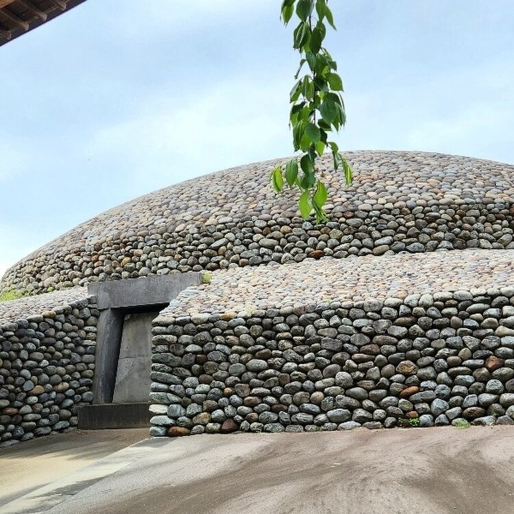 とりあえず石室の入口が見える角度でカシャ👀📱✨ これは復元したもので実際は被葬者を埋葬したら入口は石で塞いだんだろうね🤔